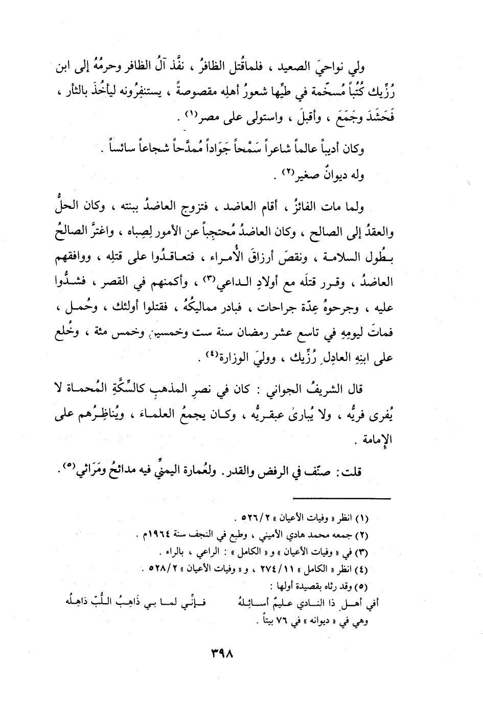 قُلْتُ: صَنّف فِي الرَّفْضِ وَالْقَدَرِ. وَلعُمَارَة اليَمَنِيِّ فِيْهِ مدَائِحُ وَمَرَاثِي (5) .