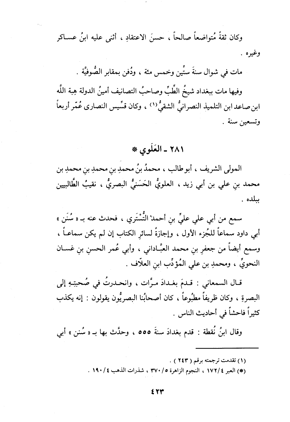 281 - العَلَوِيُّ أَبُو طَالِبٍ مُحَمَّدُ بنُ مُحَمَّدِ بنِ مُحَمَّدٍ *