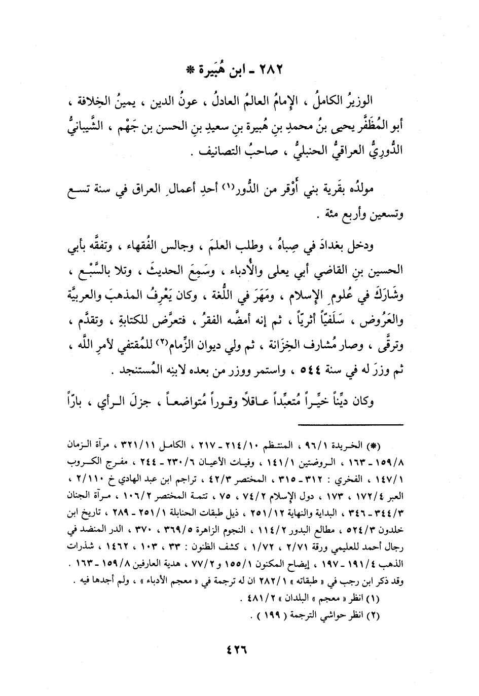 282 - ابْنُ هُبَيْرَةَ أَبُو المُظَفَّرِ يَحْيَى بنُ مُحَمَّدٍ الشَّيْبَانِيُّ *