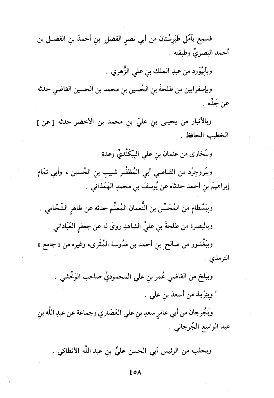 وَبإِسْفَرَايِيْنَ مِنْ: طَلْحَةَ بنِ الحُسَيْنِ بنِ مُحَمَّدِ بنِ الحُسَيْنِ القَاضِي، حَدَّثَهُ عَنْ جَدِّهِ.