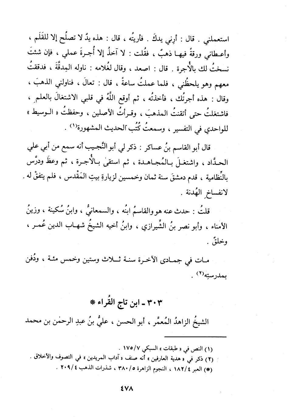 303 - ابْنُ تَاجِ القُرَّاءِ عَلِيُّ بنُ عَبْدِ الرَّحْمَنِ الطُّوْسِيُّ *