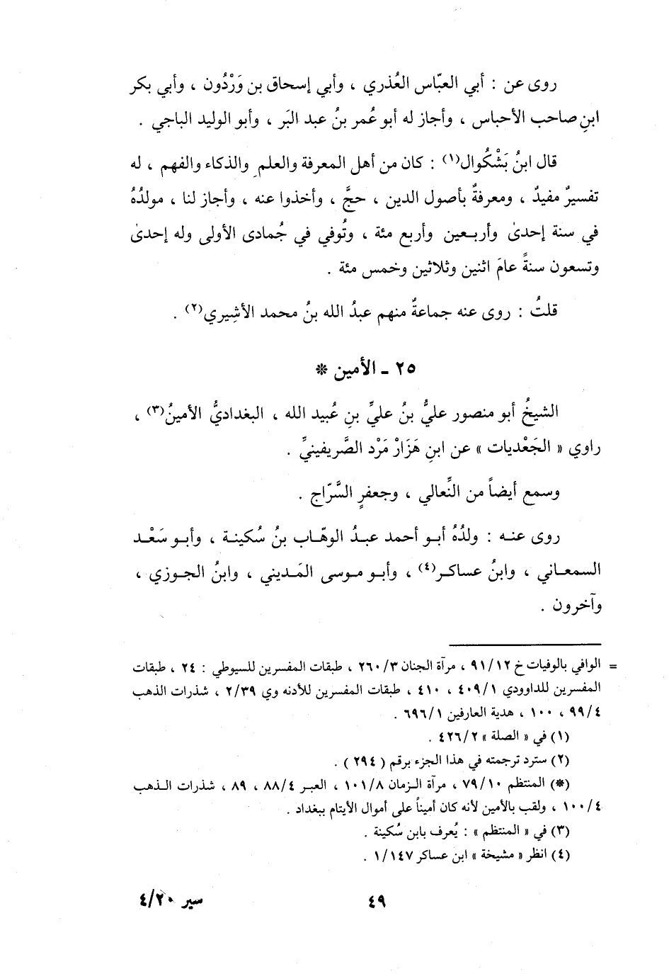 (*) المنتظم 10 / 79، مرآة الزمان 8 / 101، العبر 4 / 88، 89، شذرات الذهب 4 / 100، ولقب بالامين لأنه كان أمينا على أموال الايتام ببغداد.