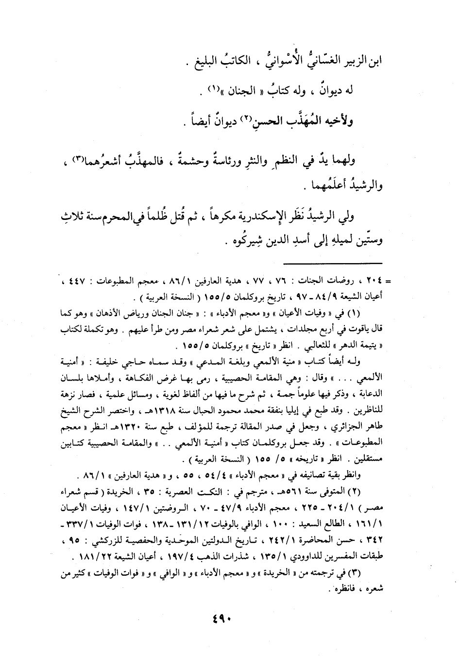 بنِ الزُّبَيْرِ الغَسَّانِيُّ، الأُسْوَانِيُّ، الكَاتِبُ البَلِيْغُ.