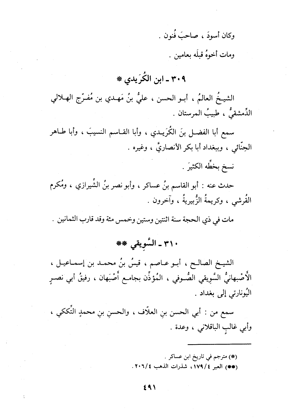 309 - ابْنُ الكُرَيْدِيِّ أَبُو الحَسَنِ عَلِيُّ بنُ مَهْدِيِّ الهِلاَلِيُّ *