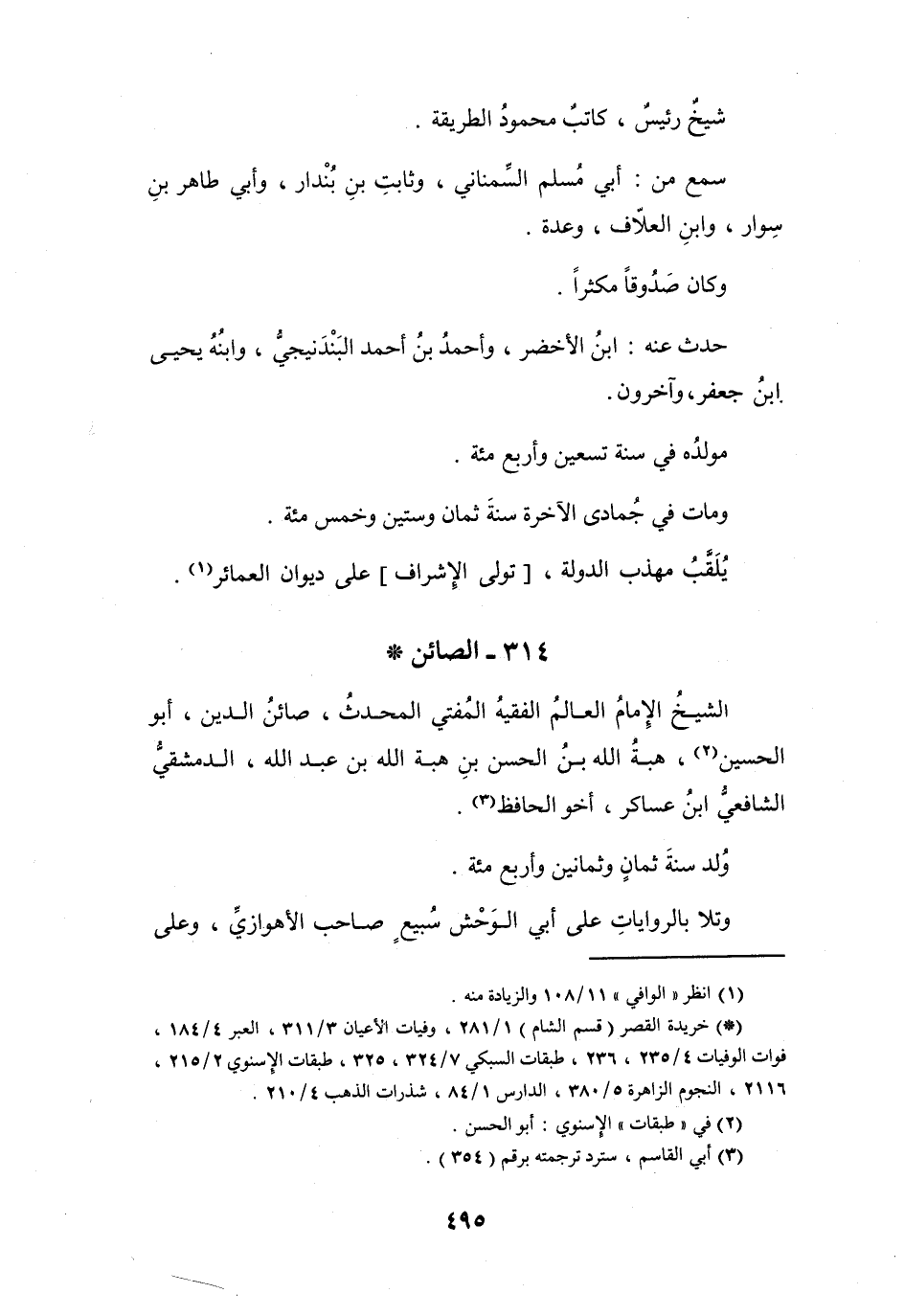 314 - الصَّائِنُ ابْنُ عَسَاكِرَ أَبُو الحُسَيْنِ هِبَةُ اللهِ بنُ الحَسَنِ *