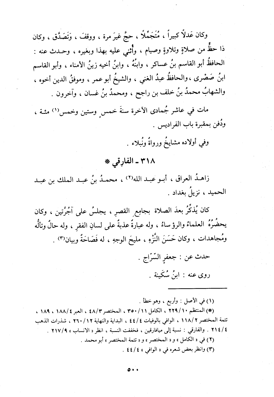 318 - الفَارِقِيُّ مُحَمَّدُ بنُ عَبْدِ المَلِكِ بنِ عَبْدِ الحَمِيْدِ *