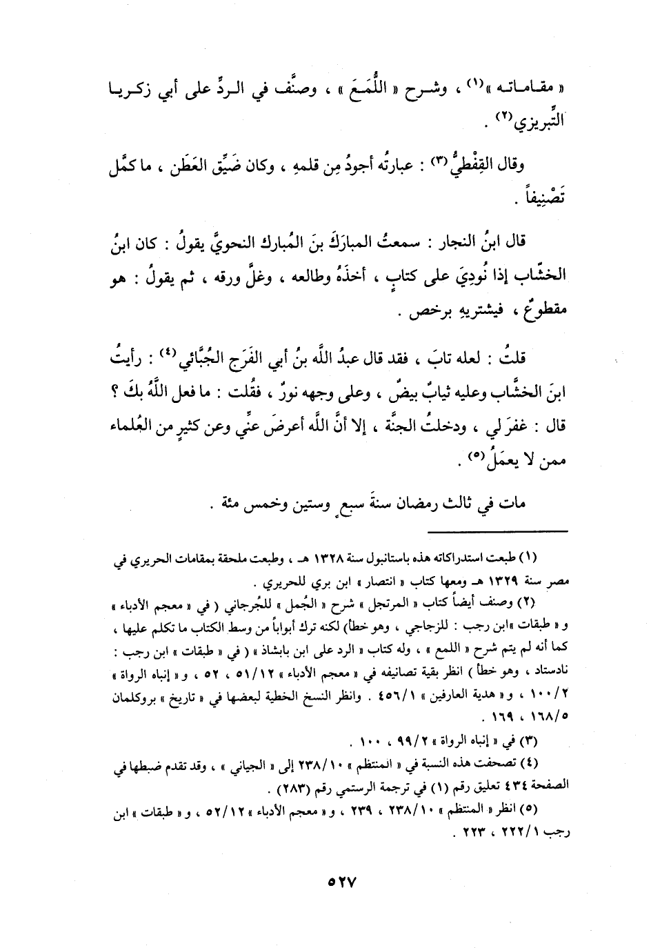 (5) انظر " المنتظم " 10 / 238، 239، و" معجم الأدباء " 12 / 52، و" طبقات " ابن رجب 1 / 222، 223.