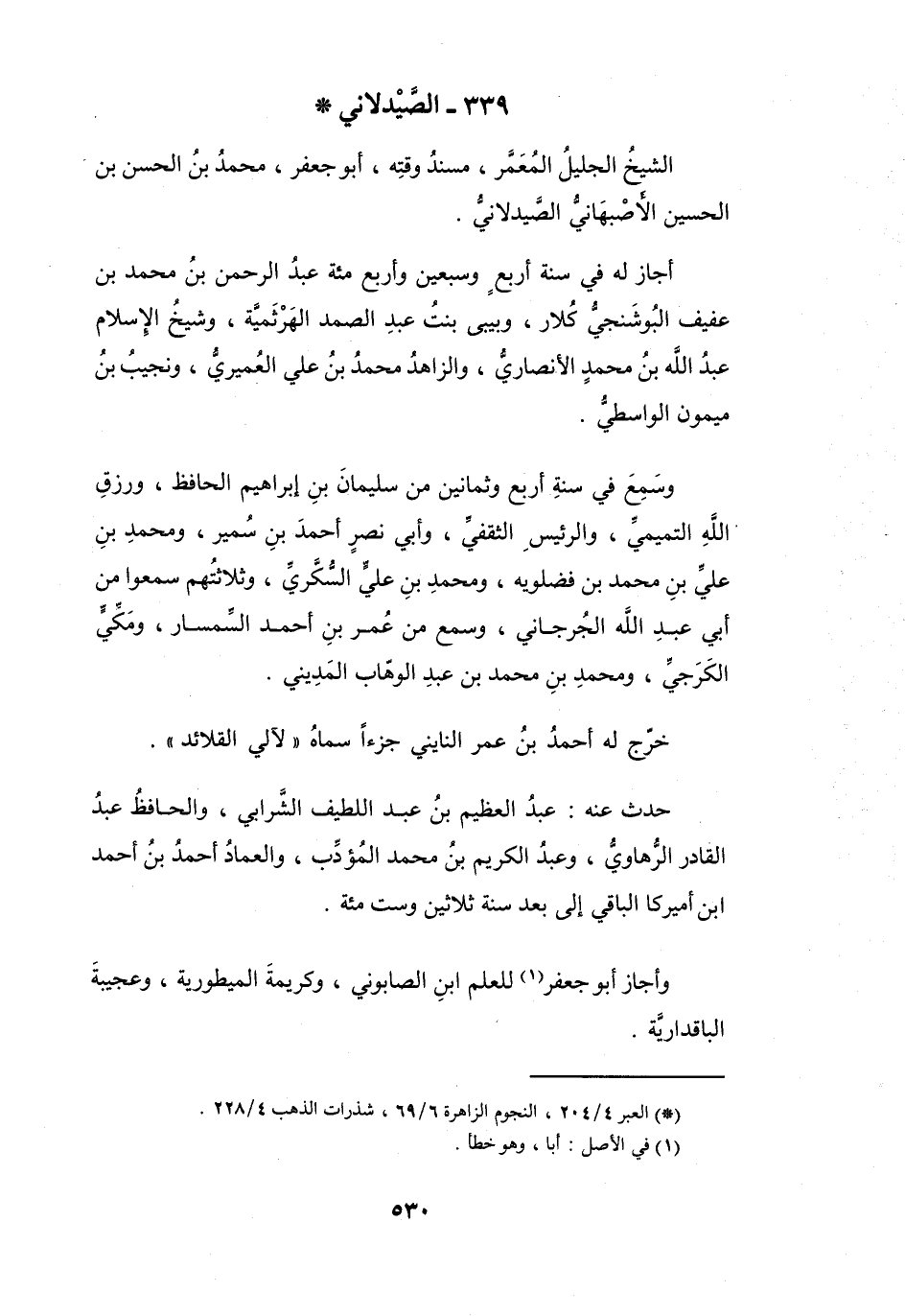 339 - الصَّيْدَلاَنِيُّ مُحَمَّدُ بنُ الحَسَنِ بنِ الحُسَيْنِ الأَصْبَهَانِيُّ *