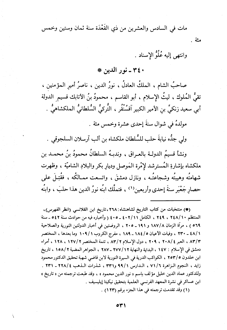 340 - نُوْرُ الدِّيْنِ مَحْمُوْدُ بنُ مَحْمُوْدِ بنِ زِنْكِي التُّرْكِيُّ *