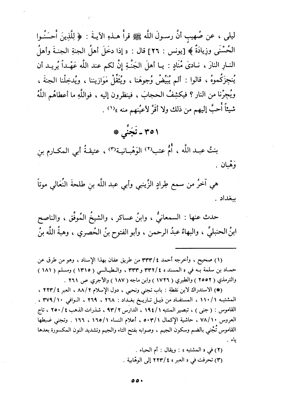 - تَجَنِّي* بِنْتُ عَبْدِ اللهِ أُمُّ عتبٍ (2) الوَهْبَانِيَّةُ (3)