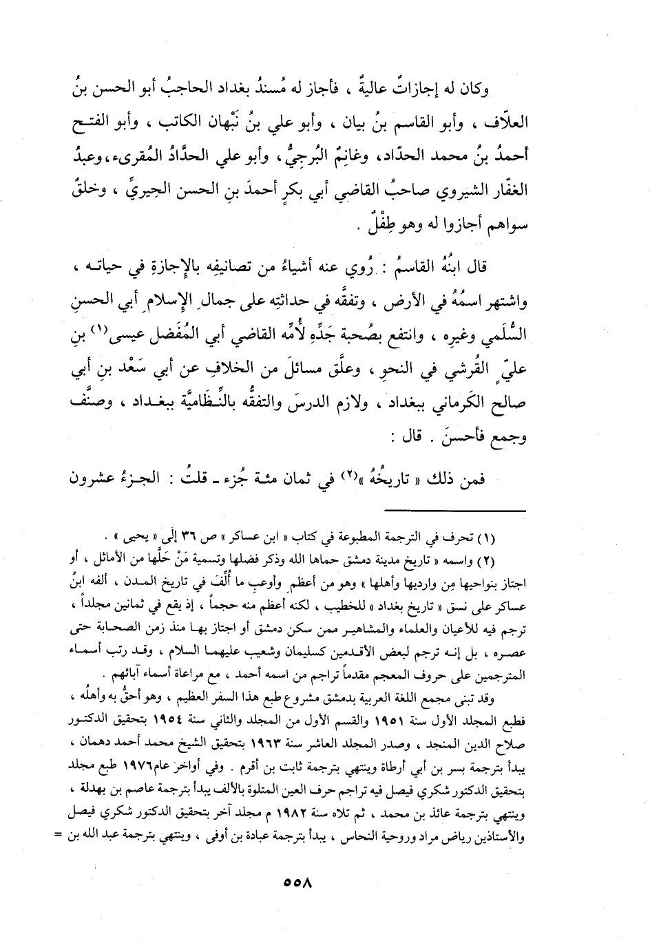 قَالَ: فَمَنْ ذَلِكَ (تَارِيخُهُ (2)) فِي ثَمَانِ مائَةِ جُزءٍ - قُلْتُ: الجُزْء عِشْرُوْنَ