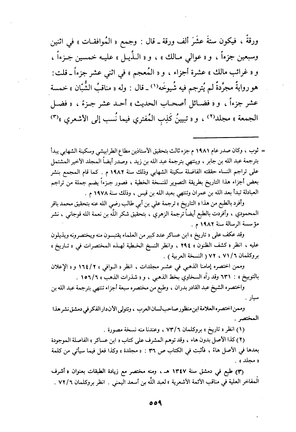 (3) طبع في دمشق سنة 1347 هـ، ومنه مختصر مع زيادة الطبقات بعنوان " أشرف المفاخر العلية في مناقب الأئمة الأشعرية " لعبد الله بن أسعد اليمني. انظر بروكلمان 6 / 72.
