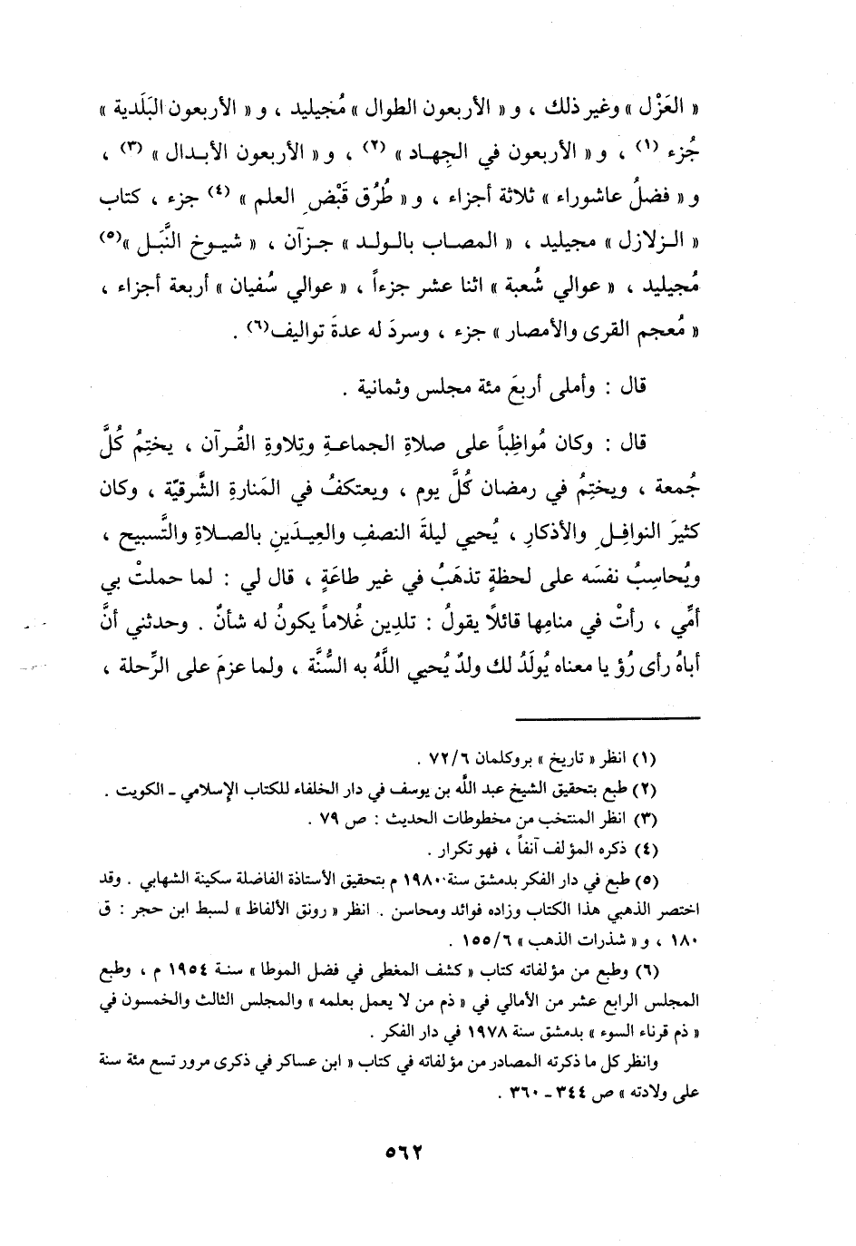 (5) طبع في دار الفكر بدمشق سنة 1980 م بتحقيق الاستاذة الفاضلة سكينة الشهابي.