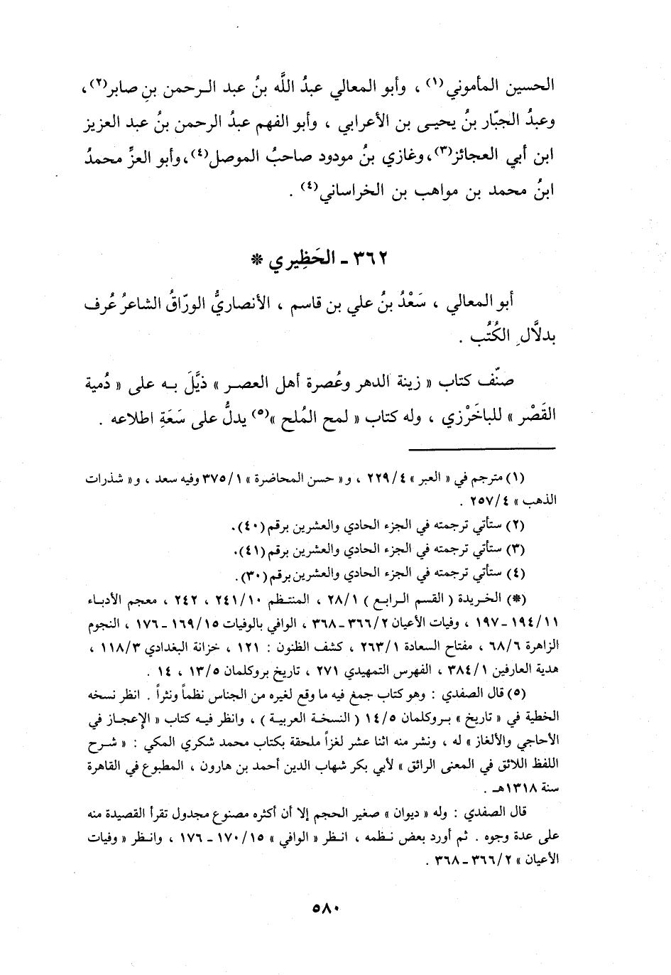 (1) مترجم في " العبر " 4 / 229، و" حسن المحاضرة " 1 / 375 وفيه سعد، و" شذرات الذهب " 4 / 257.