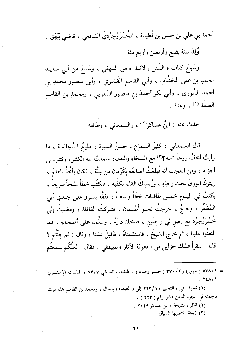 = 1 / 538 (بيهق) و2 / 370 (خسر وجرد) ، طبقات السبكي 7 / 73، طبقات الاسنوي 1 / 248.