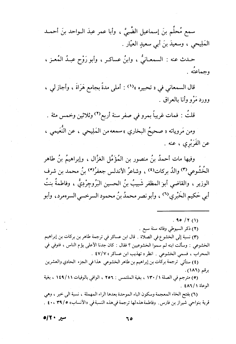 (4) ستأتي ترجمة بركات بن إبراهيم بن طاهر الخشوعي هذا في الجزء الحادي والعشرين برقم (186) .