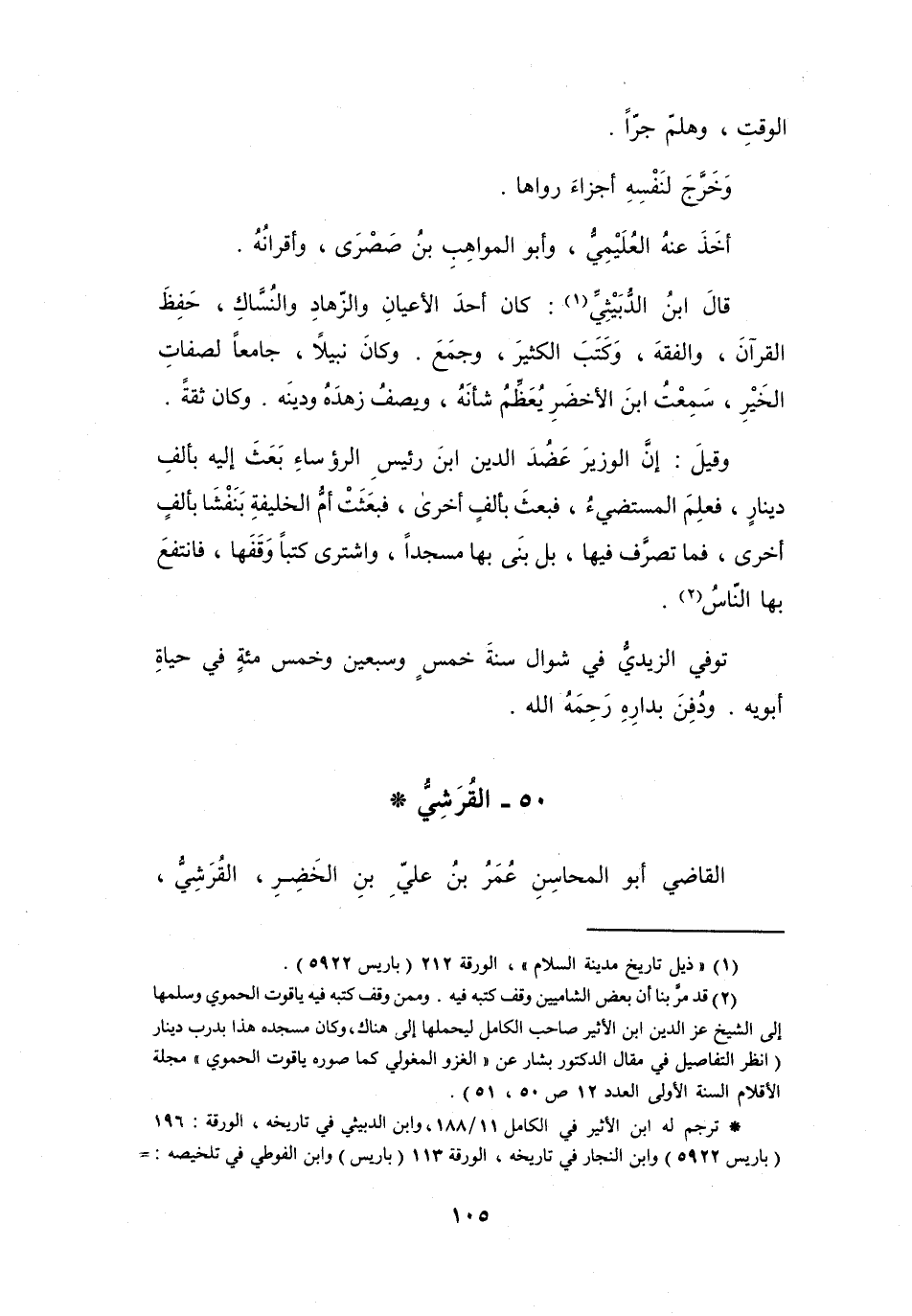50 - القُرَشِيُّ أَبُو المَحَاسِنِ عُمَرُ بنُ عَلِيٍّ بنِ الخَضِرِ *