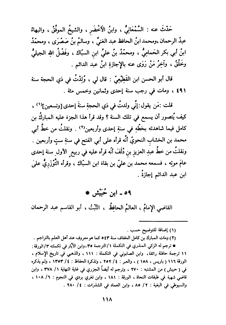 (*) ترجم له الزكي المنذري في التكملة 1 / الترجمة 35، وابن الابار في تكملته 3 / الورقة: 11 ترجمة حافلة رائقة، وابن الصابوني في التكملة: 111، والذهبي في تاريخ الإسلام، الورقة 116 (باريس، 158) ، والعبر: 4 / 252، وتذكرة الحفاظ: 4 / 1353، ولم يذكره في (حبيش) من المشتبه: 270، وترجم له أيضا الجزري في غاية النهاية 1 / 378، وابن قاضي شهبة في طبقات النحاة، الورقة: 181، وابن تغري بردي في النجوم: 6 / 108، والسيوطي في البغية: 2 / 85، وابن العماد في الشذرات: 4 / 280.