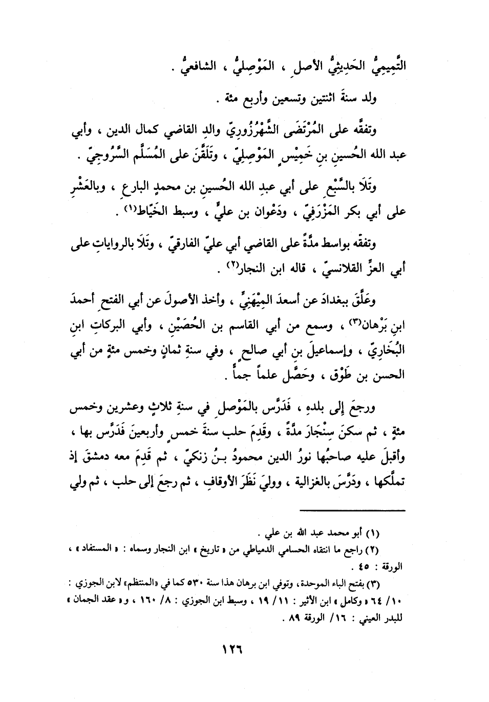 (3) بفتح الباء الموحدة، وتوفي ابن برهان هذا سنة 530 كما في (المنتظم) لابن الجوزي: 10 / 64 (وكامل) ابن الأثير: 11 / 19، وسبط ابن الجوزي: 8 / 160، و (عقد الجمان) للبدر العيني: 16 / الورقة 89.