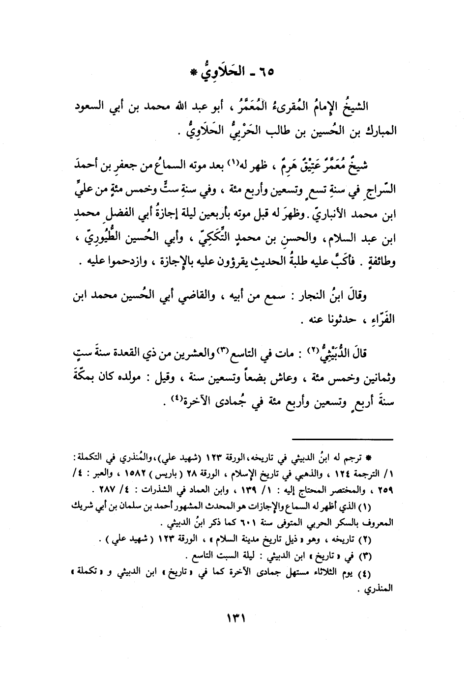 65 - الحَلاَوِيُّ أَبُو عَبْدِ اللهِ مُحَمَّدُ بنُ المُبَارَكِ بنِ الحُسَيْنِ *