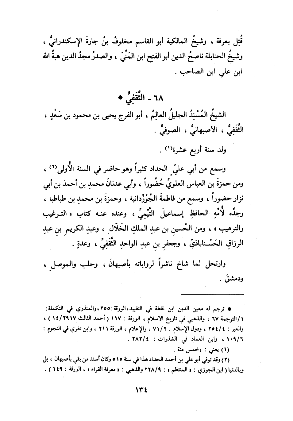 68 - الثَّقَفِيُّ أَبُو الفَرَجِ يَحْيَى بنُ مَحْمُوْدِ بنِ سَعْدٍ *