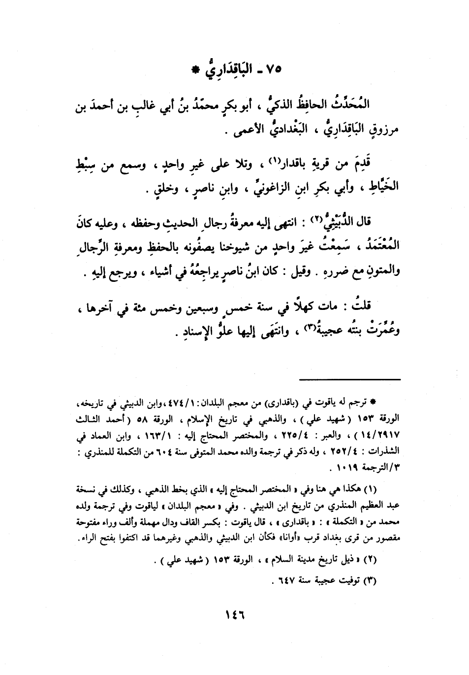 75 - البَاقِدَارِيُّ أَبُو بَكْرٍ مُحَمَّدُ بنُ أَبِي غَالِب بنِ أَحْمَدَ *