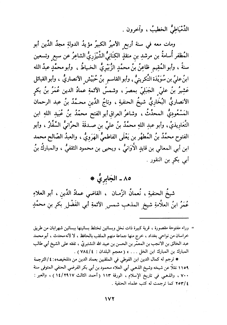 85 - الجَابِرِيُّ أَبُو العَلاَءِ عُمَرُ بنُ بَكْرِ بنِ مُحَمَّدٍ *