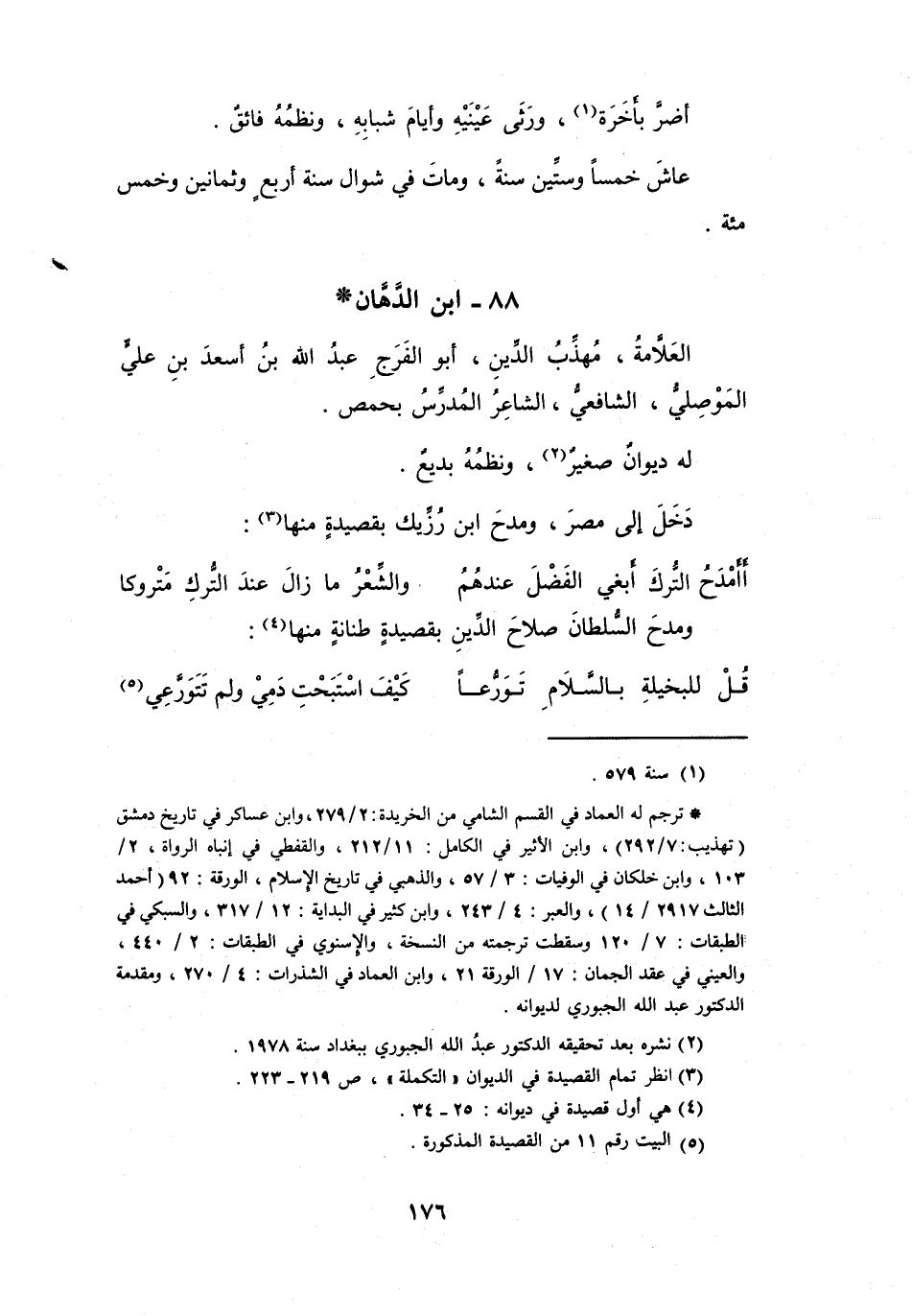 88 - ابْنُ الدَّهَّانِ عَبْدُ اللهِ بنُ أَسْعَدَ بنِ عَلِيٍّ المَوْصِلِيُّ *