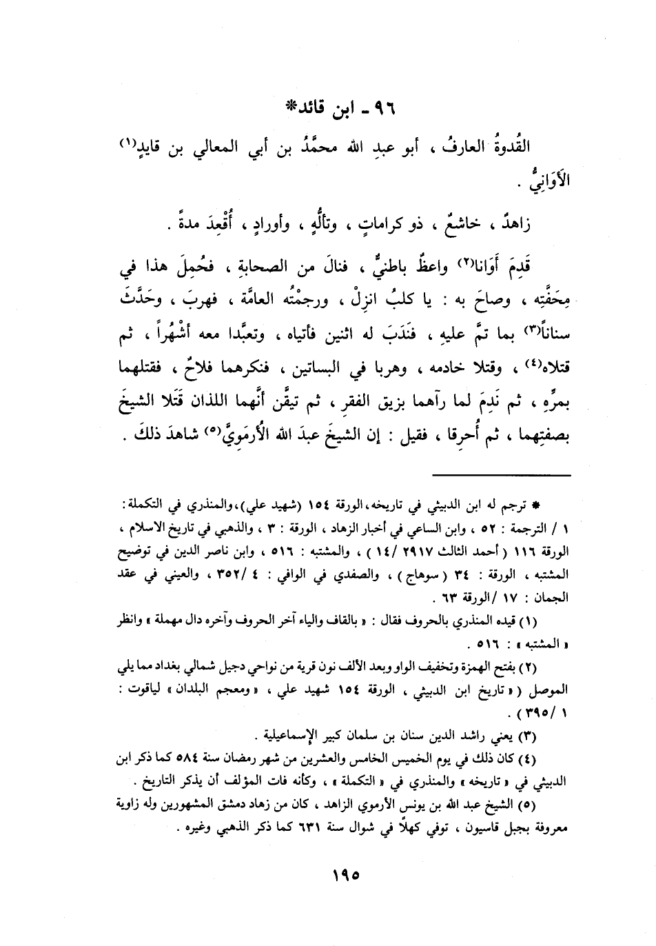 96 - ابْنُ قَائِدٍ أَبُو عَبْدِ اللهِ مُحَمَّدُ بنُ أَبِي المَعَالِي الأَوَانِيُّ *