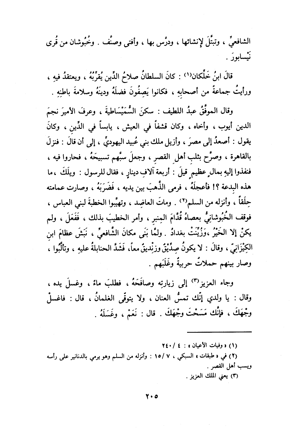 (2) في (طبقات) السبكي، 7 / 15: وأنزله من السلم وهو يرمي بالدنانير على رأسه ويسب أهل القصر.