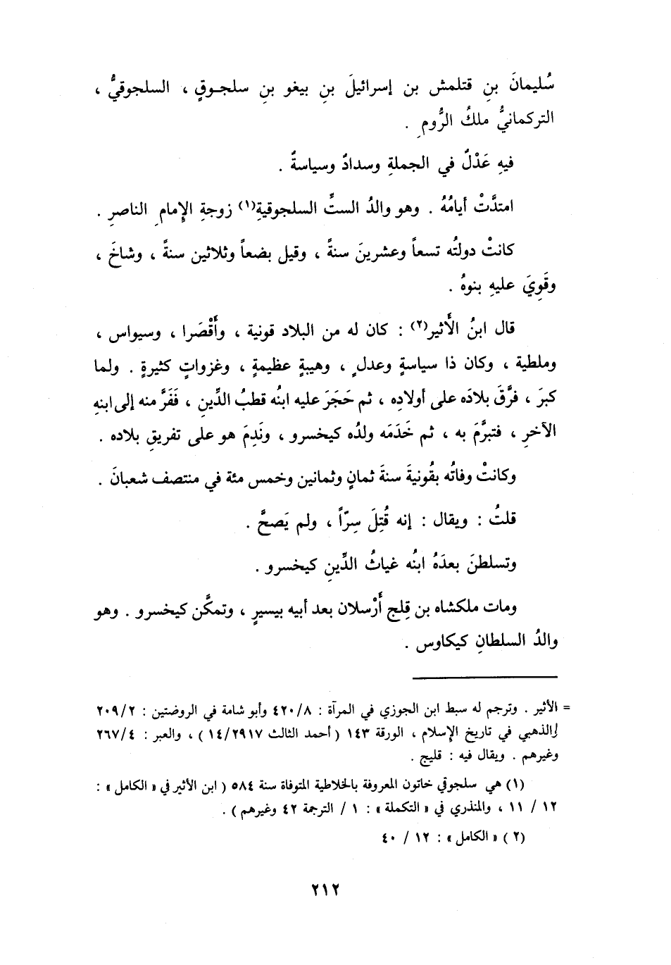 = الأثير. وترجم له سبط ابن الجوزي في المرآة: 8 / 420 وأبو شامة في الروضتين: 2 / 209 والذهبي في تاريخ الإسلام، الورقة 143 (أحمد الثالث 2917 / 14) ، والعبر: 4 / 267 وغيرهم. ويقال فيه: قليج.