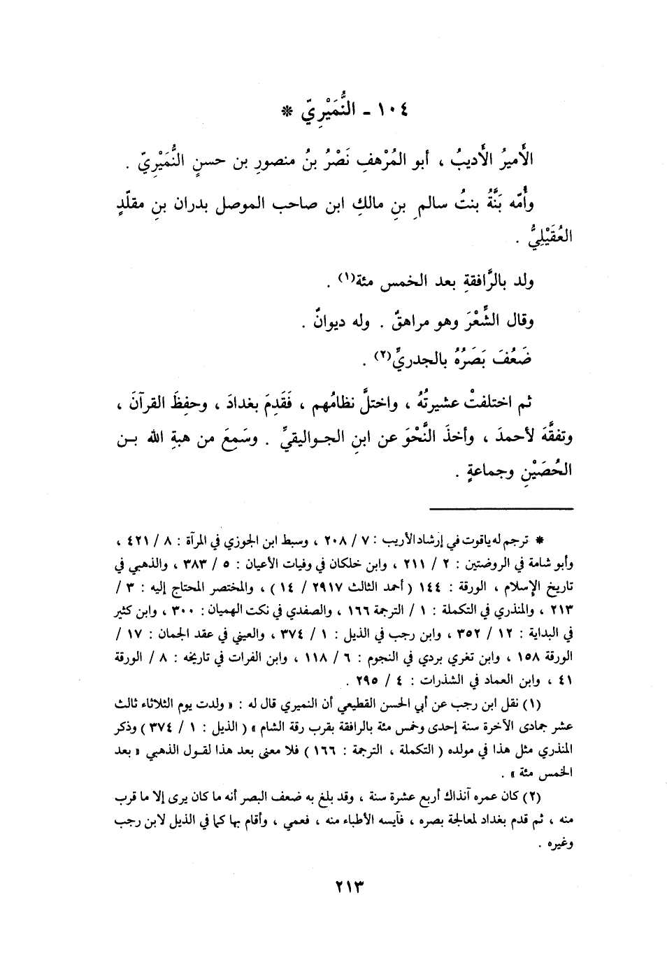 104 - النُّمَيْرِيُّ أَبُو المُرْهفِ نَصْرُ بنُ مَنْصُوْرِ بنِ حَسَنٍ *