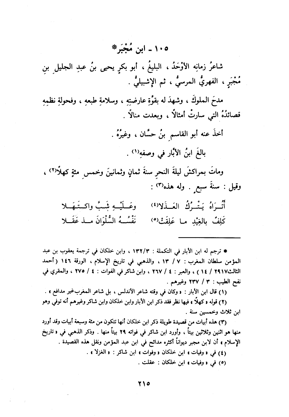 (2) قوله (كهلا) فيها نظر فقد ذكر ابن الابار وابن خلكان وابن شاكر وغيرهم أنه توفي وهو ابن ثلاث وخمسين سنة.