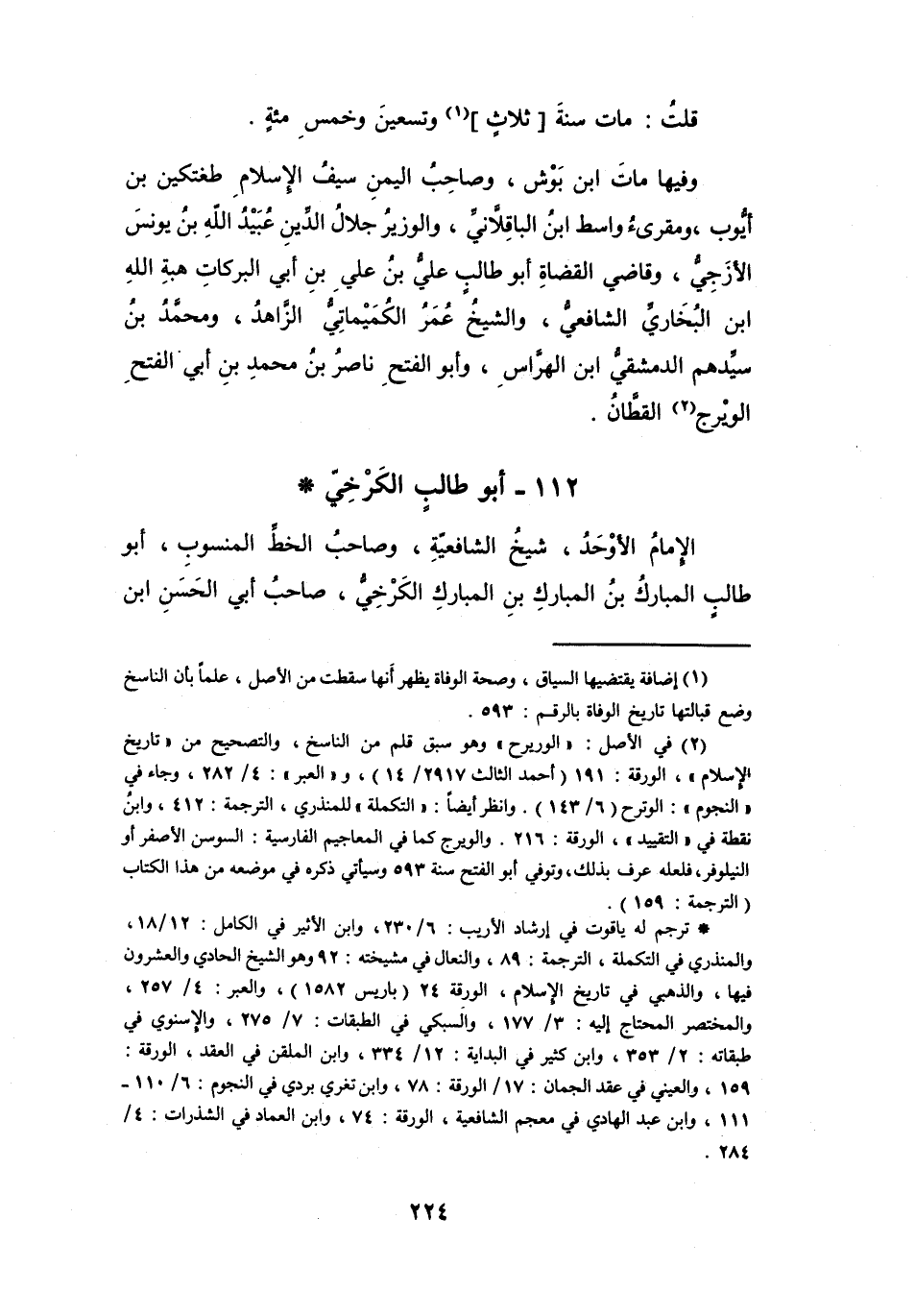 (2) في الأصل: (الوريرح) وهو سبق قلم من الناسخ، والتصحيح من (تاريخ الإسلام) ، الورقة: 191 (أحمد الثالث 2917 / 14) ، و (العبر) : 4 / 282، وجاء في (النجوم) : الوترح. وانظر أيضا: (التكملة) للمنذري، الترجمة: 412، وابن نقطة في (التقييد) ، الورقة: 216.