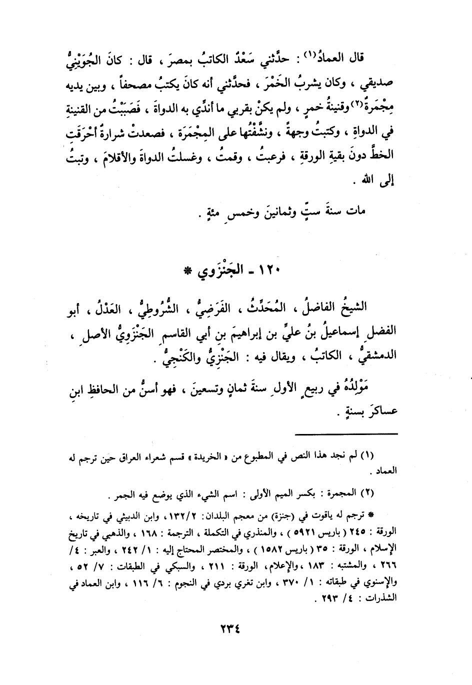 (*) ترجم له ياقوت في (جنزة) من معجم البلدان: 2 / 132، وابن الدبيثي في تاريخه، الورقة: 245 (باريس 5921) ، والمنذري في التكملة، الترجمة: 168، والذهبي في تاريخ الإسلام، الورقة: 35 (باريس 1582) ، والمختصر المحتاج إليه: 1 / 242، والعبر: 4 / 266، والمشتبه: 183، والاعلام، الورقة: 211، والسبكي في الطبقات: 7 / 52، والاسنوي في طبقاته: 1 / 370، وابن تغري بردي في النجوم: 6 / 116، وابن العماد في الشذرات: 4 / 293.