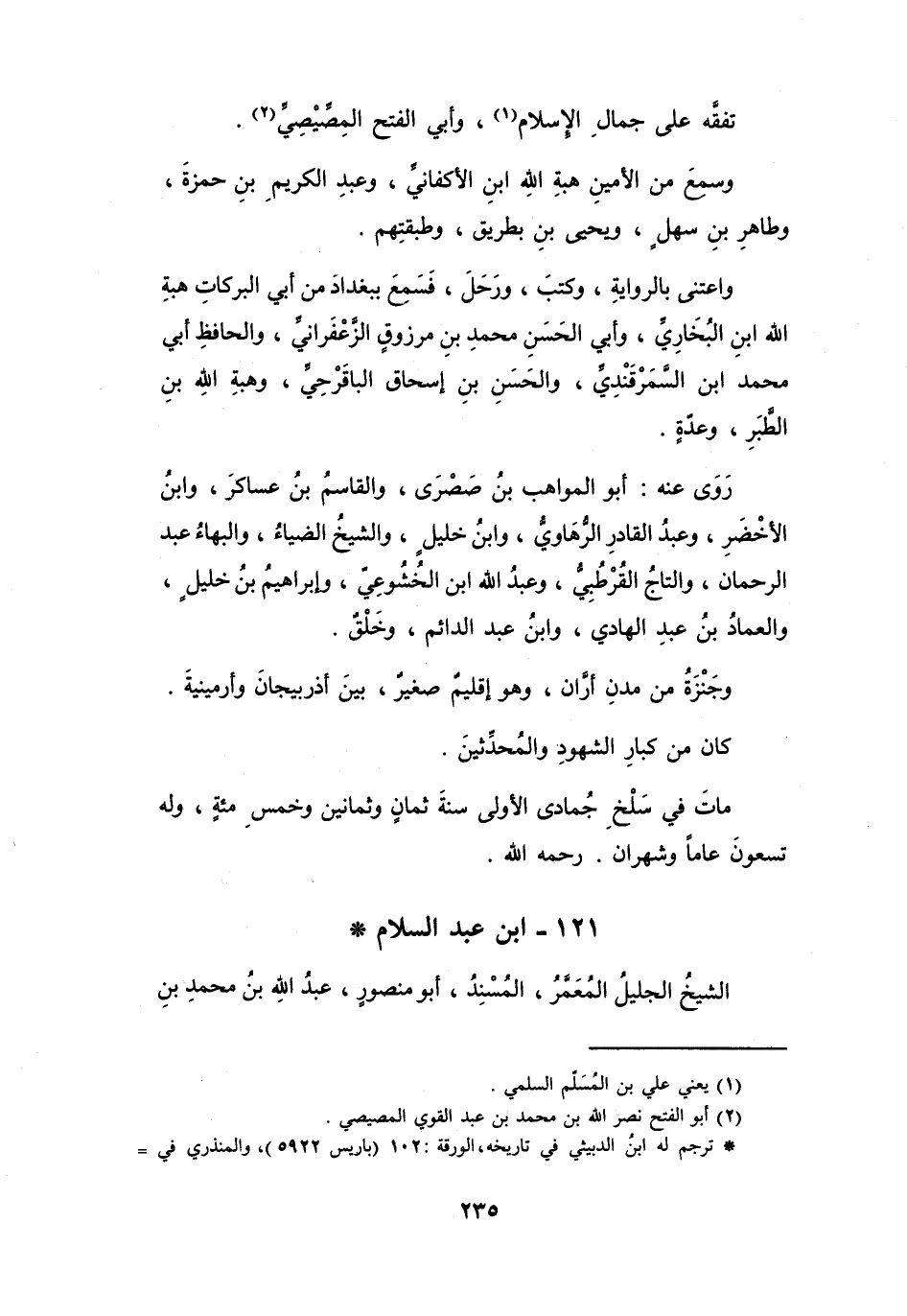 121 - ابْنُ عَبْدِ السَّلاَمِ عَبْدُ اللهِ بنُ مُحَمَّدِ بنِ عَلِيِّ البَغْدَادِيُّ *
