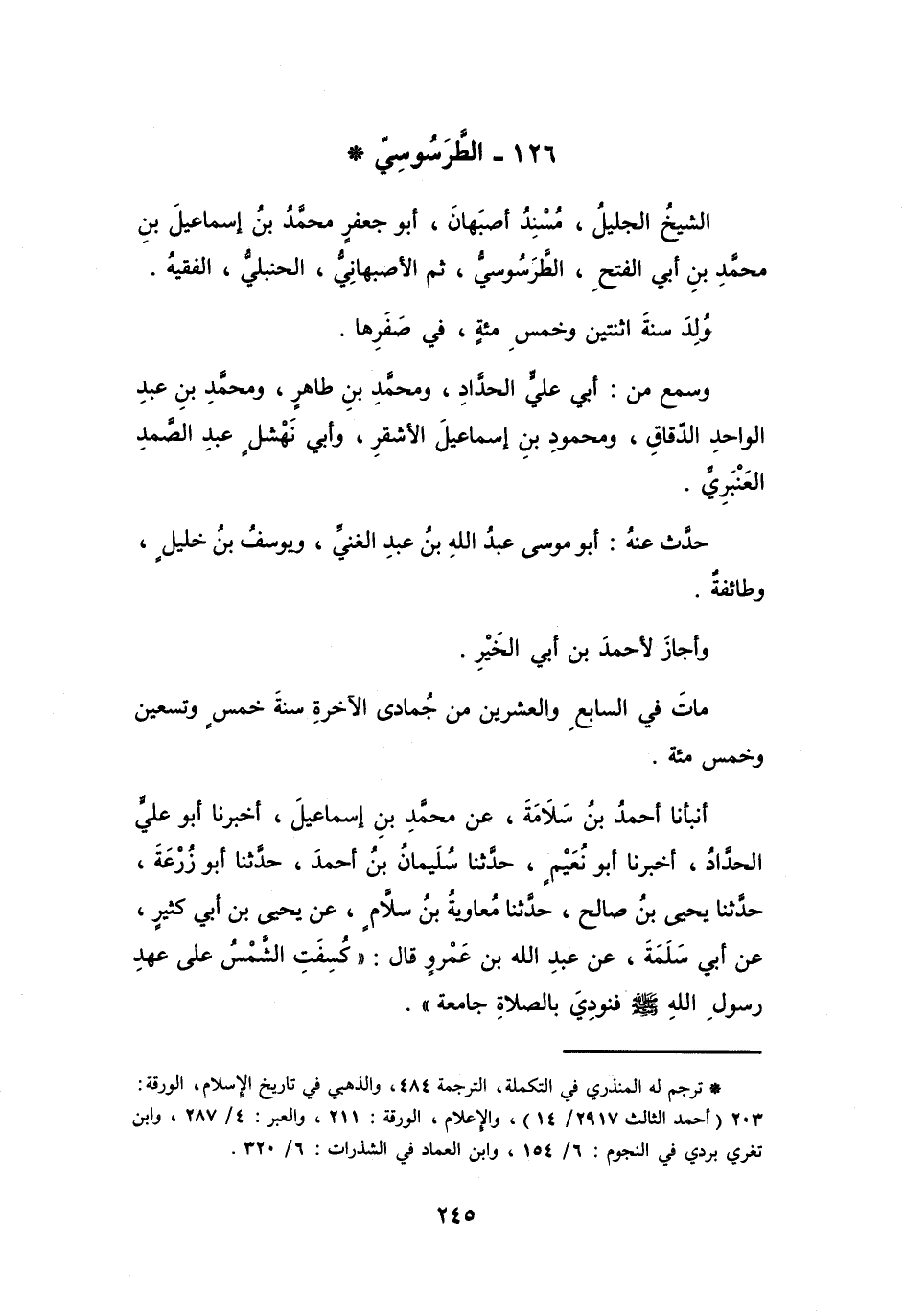 126 - الطَّرَسُوْسِيُّ أَبُو جَعْفَرٍ مُحَمَّدُ بنُ إِسْمَاعِيْلَ بنِ مُحَمَّدٍ *