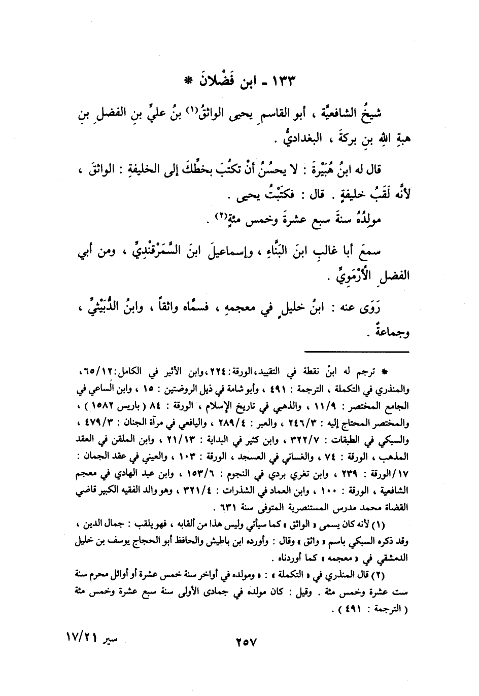 133 - ابْنُ فَضْلاَنَ يَحْيَى بنُ عَلِيِّ بنِ الفَضْلِ البَغْدَادِيُّ *