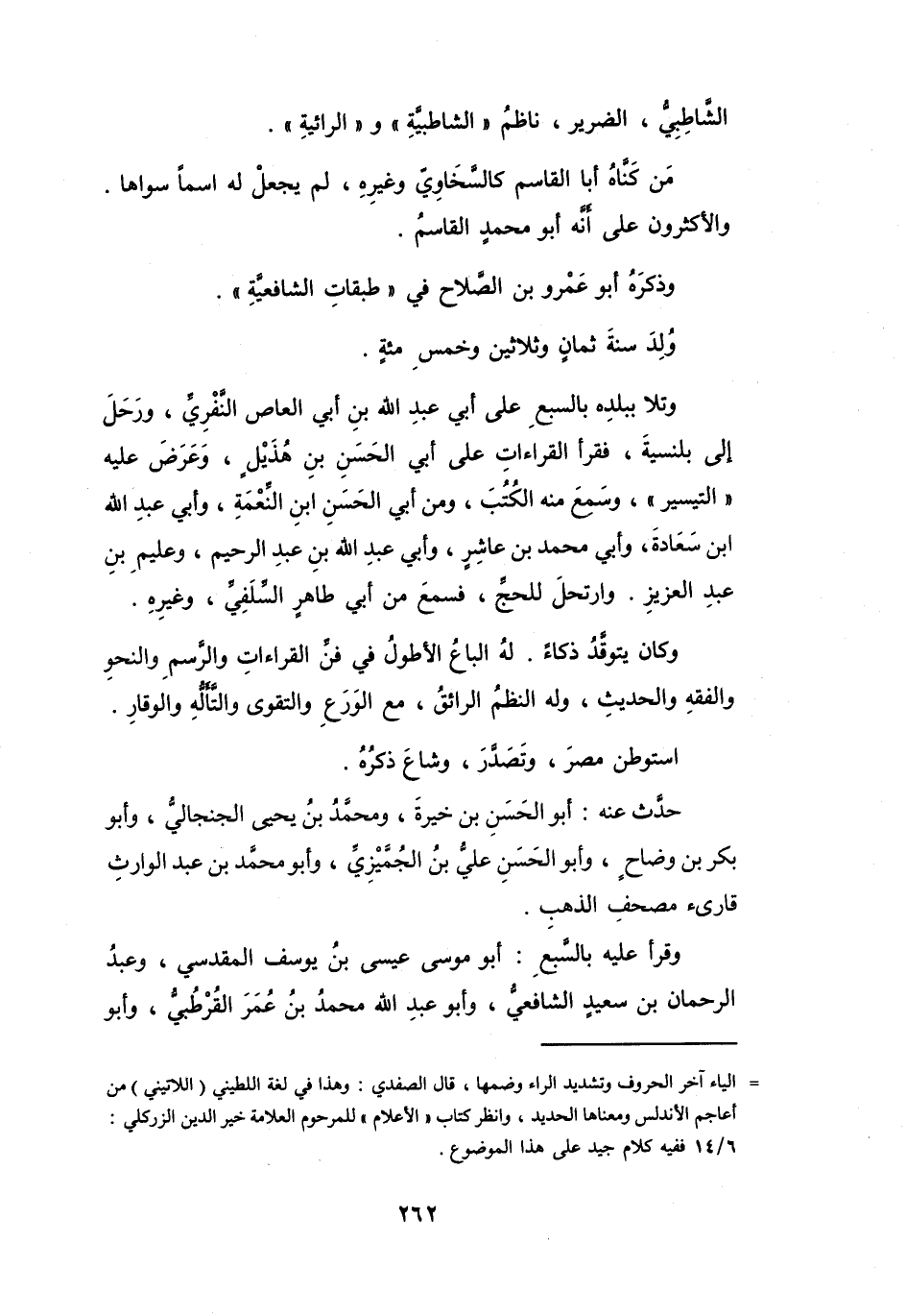 الشَّاطِبِيُّ، الضَّرِيْرُ، نَاظِمُ (الشَّاطبيَّةِ) ، وَ (الرَّائِيَّةِ) .