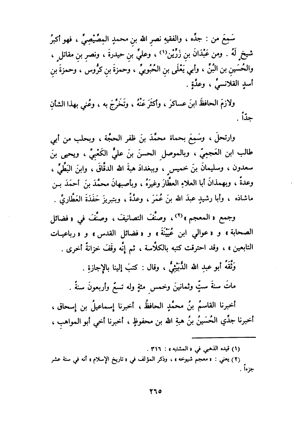 (2) يعني: (معجم شيوخه) ، وذكر المؤلف في (تاريخ الإسلام) أنه في ستة عشر جزءا.