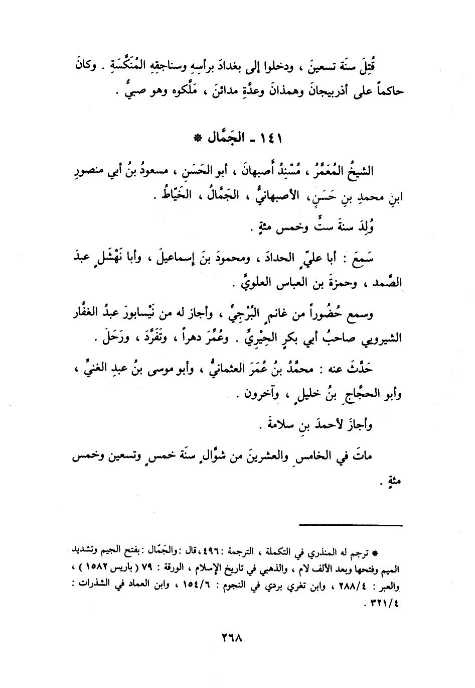 141 - الجَمَّالُ مَسْعُوْدُ بنُ أَبِي مَنْصُوْرٍ بنِ مُحَمَّدٍ الأَصْبَهَانِيُّ *