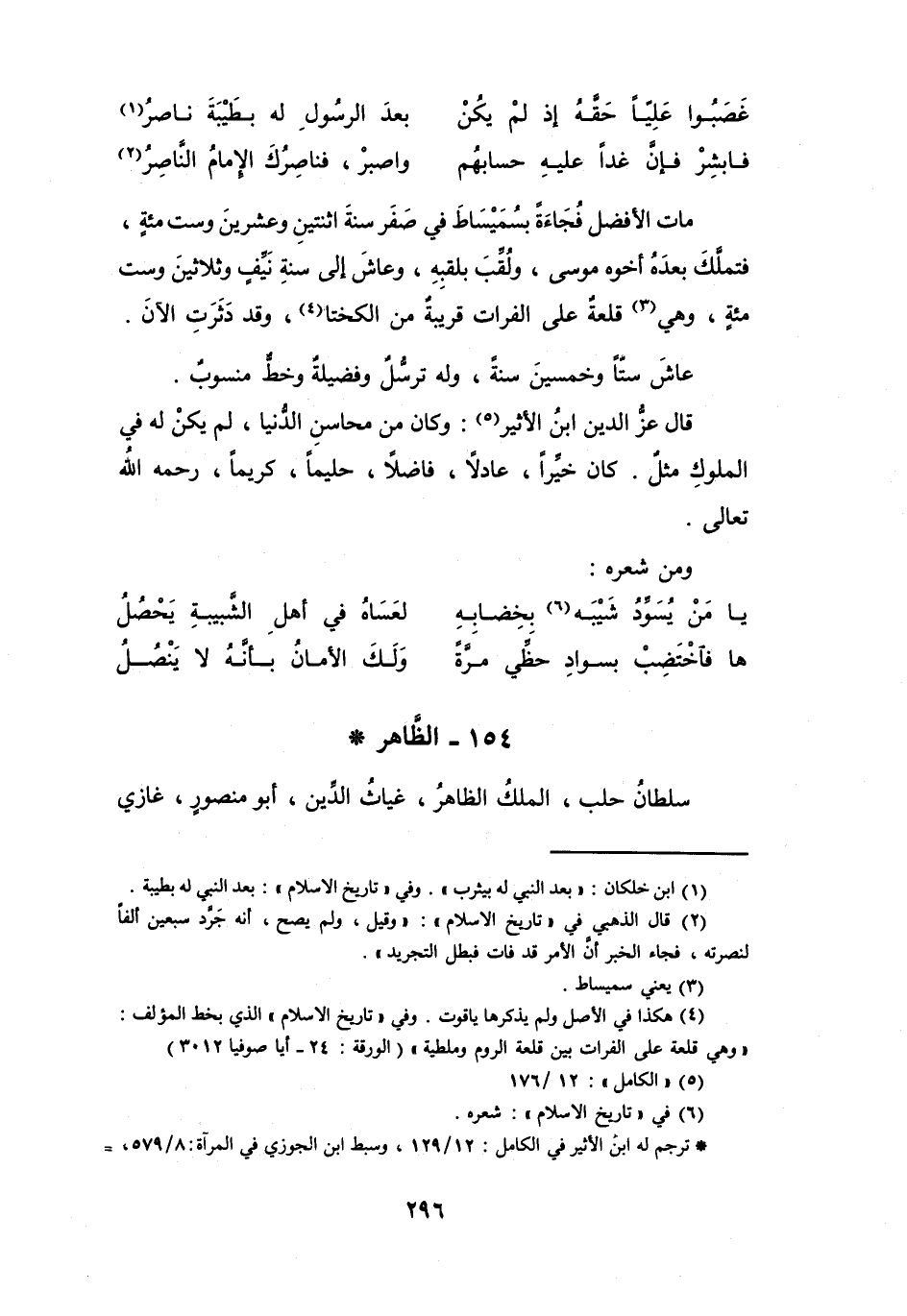 154 - الظَّاهِرُ غَازِي بنُ صَلاَحِ الدِّيْنِ يُوْسُفَ بنِ أَيُّوْبَ *
