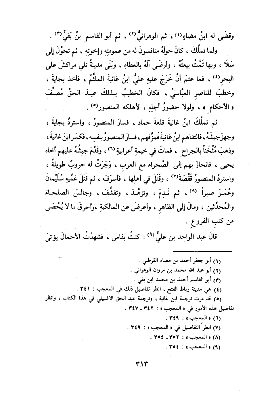 (5) قد مرت ترجمة ابن غانية، وترجمة عبد الحق الاشبيلي في هذا الكتاب، وانظر تفاصيل هذه الأمور في (المعجب) : 342 - 347.