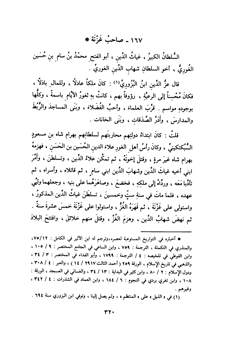 167 - صَاحِبُ غَزْنَةَ مُحَمَّدُ بنُ سَامِ بنِ حُسَيْنٍ الغُوْرِيُّ *