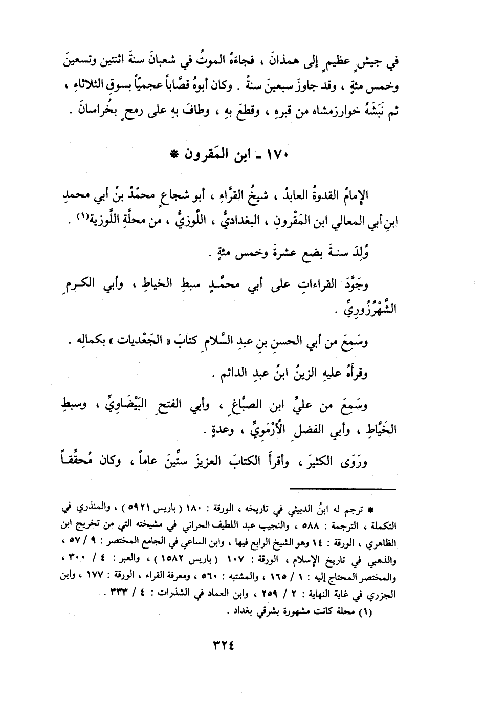 170- ابْنُ المَقْرُوْنِ مُحَمَّدُ بنُ أَبِي مُحَمَّدٍ البَغْدَادِيُّ *