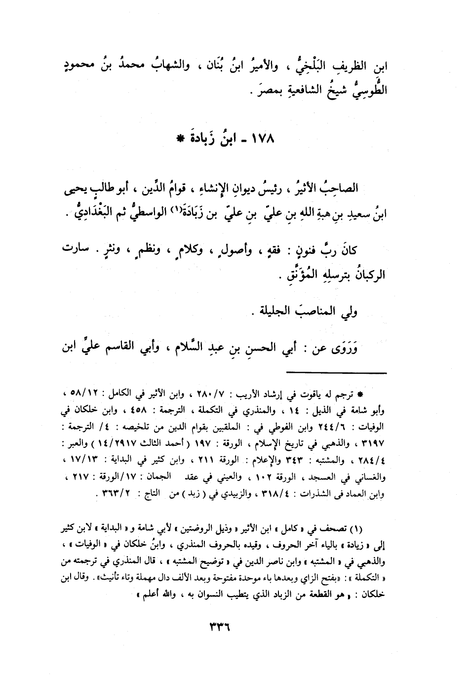 (1) تصحف في (كامل) ابن الأثير (وذيل الروضتين) لأبي شامة و (البداية) لابن كثير إلى (زيادة) بالايء آخر الحروف، وقيده بالحروف المنذري، وابن خلكان في (الوفيات) ،