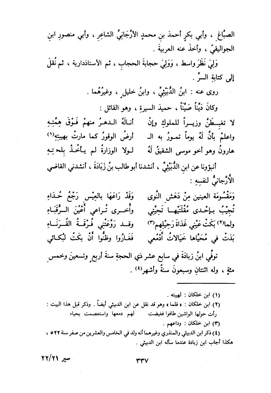 (4) ذكر ابن الدبيثي والمنذري وغيرهما أنه ولد في الخامس والعشرين من صفر سنة 522، هكذا أجاب ابن زبادة عندما سأله ابن الدبيثي.