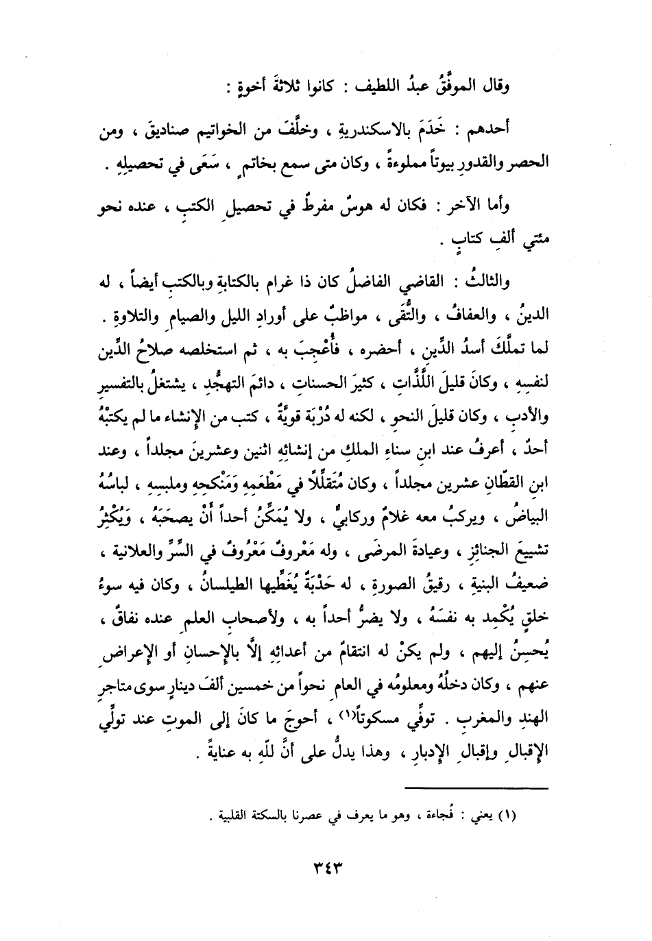 وَقَالَ المُوَفَّقُ عَبْدُ اللَّطِيْفِ: كَانُوا ثَلاَثَةَ إخوَةٍ: