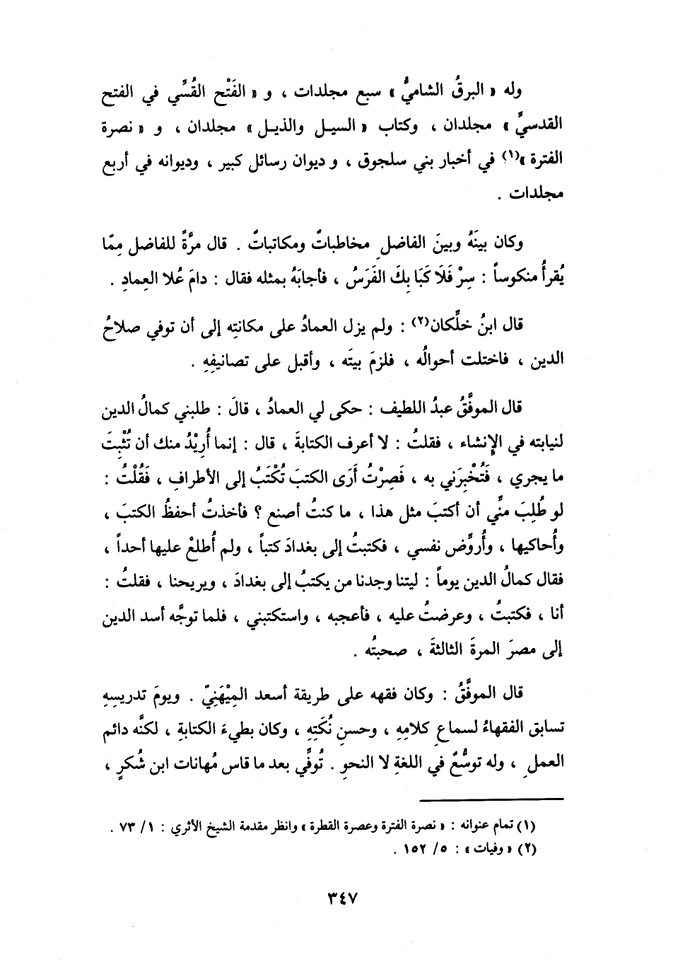 قَالَ المُوَفَّقُ عَبْدُ اللَّطِيْفِ: حَكَى لِي العِمَادُ، قَالَ: طلبنِي كَمَالُ الدِّيْنِ لنِيَابتِهِ فِي الإِنشَاءِ، فَقُلْتُ: لاَ أَعْرفُ الكِتَابَةَ.