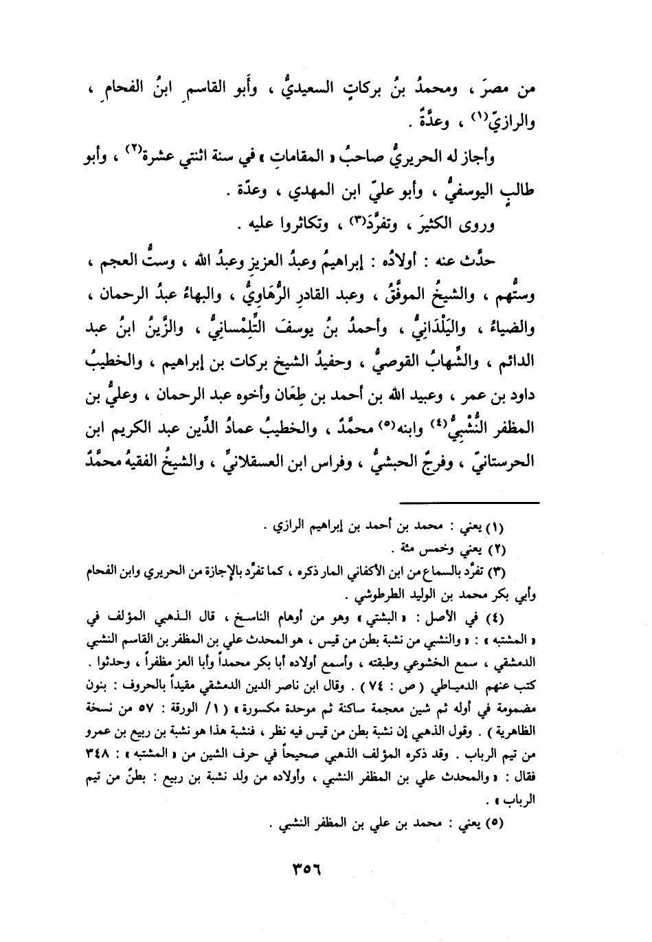 (4) في الأصل: (البشتي) وهو من أوهام الناسخ، قال الذهبي المؤلف في (المشتبه) : والنشبي من نشبة بطن من قيس، هو المحدث علي بن المظفر بن القاسم النشبي الدمشقي، سمع الخشوعي وطبقته، وأسمع أولاده أبا بكر محمدا وأبا العز مظفرا، وحدثوا.